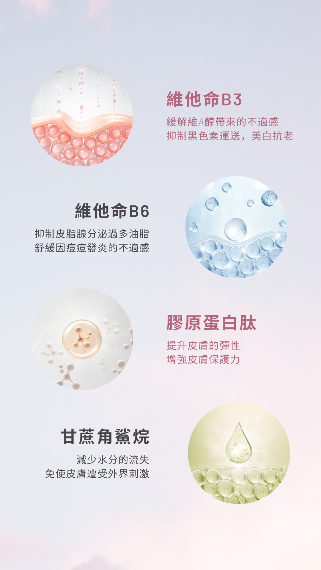 調節皮脂分泌,控制皮膚油脂過多,減少毛孔堵塞。
