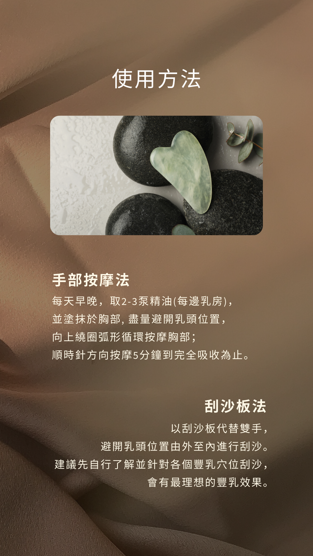 豐乳不是求豐乳,是求女性健康;Orca's 獨家配方,調整女性荷爾蒙之餘,讓大家獲得最強大的 Bonus效果~20歲的長平公主,產後想回復胸型的女士們,這款全天然成份的豐乳精油,絕對是你們的不二之選。豐乳不是一味求外表的變化,真正需要正視的,是我們寶貴的內分泌系統。系統失調不但會影響外觀(一定不只胸部遭殃),也會引致很多生理上的問題。女人一生所分泌的女性荷爾蒙的量,只有大約一湯匙而已!請大家正視這位一生中重要的夥伴,愛美,也要愛自己。